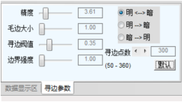 2. 2軟件具備強(qiáng)大的尋邊功能 能夠抓取很弱的邊緣,可任意設(shè)定尋邊方向,避免尋邊錯(cuò)誤,靈活設(shè)置尋邊參數(shù),去除雜點(diǎn)及毛邊的影響。