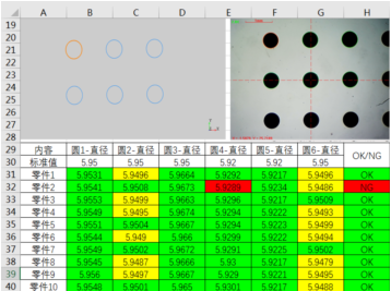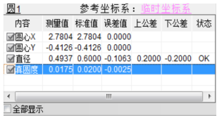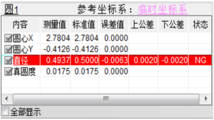 6.自動(dòng)計(jì)算元素的形位公差 軟件提供完整的公差設(shè)定和計(jì)算功能,可設(shè)定和計(jì)算形位公差如直線度,圓度,平面度、圓柱度, 輪廓度、位置度、平行度、垂直度、同心度、圓跳動(dòng)等。并自動(dòng)判別公差是否OK或NG,并具備NG示警及提示功能。 形象化的公差圖表使用戶獲知具體超差位置,方便查找超差原因。